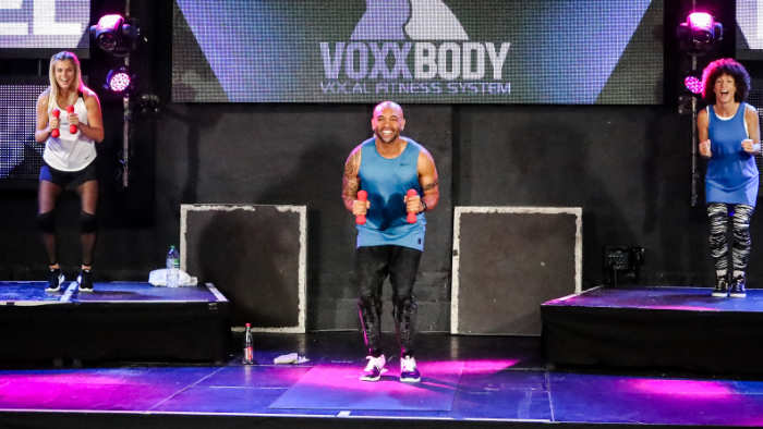 I’m also the creator of the VOXXBODY®, the award-winning home workout program that combines fitness training with vocal exercises. It’s probably the coolest home workout program on the market today.